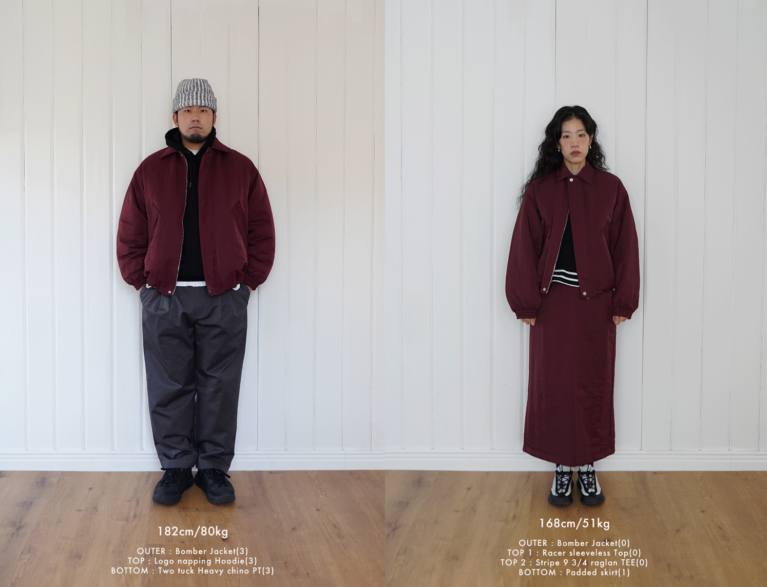 - 몸판은 6온스, 소매는 4온스의 솜을 사용하여 따뜻하지만 부해보이지 않는 실루엣 연출